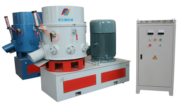 團粒機是一種將廢棄的熱塑性薄膜及壁厚小于2毫米的制品進行直接造粒的設(shè)備,它可對軟聚氯乙烯,高低壓聚乙烯、聚苯乙烯、聚丙烯及其它熱塑性塑料的廢棄制品或薄膜進行團粒,亦可對發(fā)泡聚苯乙烯的廢棄制品進行造粒。廢料投入機器鍋體內(nèi)后,經(jīng)高速旋轉(zhuǎn)的轉(zhuǎn)刀刃和固定刀刃的剪切作用,使物料很快被切成碎片,切碎后的料或片在轉(zhuǎn)刀盤的離心力作用下沿鍋體內(nèi)壁面流動,同時受下漿作用物料又上下翻動,由四周向鍋體中心方向運動,由于在高速下物料本身之間的摩擦以及與鍋壁和刀片的摩擦產(chǎn)生了大量摩擦熱,使物料溫度迅速上升達到半塑化狀態(tài),互相粘連成小塊,在物料將要結(jié)塊前,將預先準備的定量水全部噴淋入物料中,冷水遇到熱的物料,迅速氣化,帶走物料表面熱量,這樣使物料表面急劇冷卻防止結(jié)塊,然后經(jīng)轉(zhuǎn)刀刃和定刀刃間的破碎作用使之切碎成為顆粒(大小不齊不規(guī)則的粒料)。在切碎過程中,還可根據(jù)需要加入適當?shù)念伭线M行著色。 本機造出的粒料可以直接供擠出機,注射機使用,對于要求較嚴的制品也可先經(jīng)擠出造粒機再經(jīng)塑化,造粒后使用。